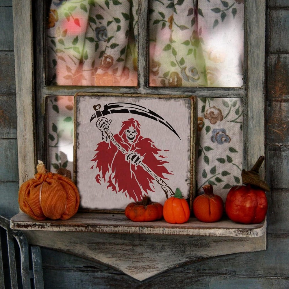 【Halloween Theme Design】: There are painting templates with various styles and patterns of death, skeleton, sickle, full of Halloween atmosphere.