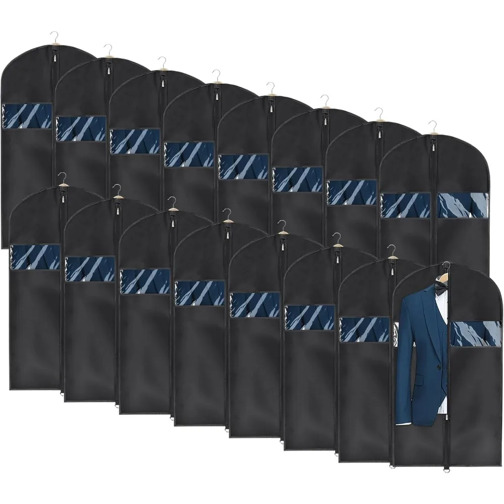 16 Pack Suit Garment Bag for Men, 40-Inch Suit Cover Bag Garment Bag for Multiple Suits for Closet Storage with Clear Window for Suit Jacket, Skirt, Shirt and Coat, Black, UN0755