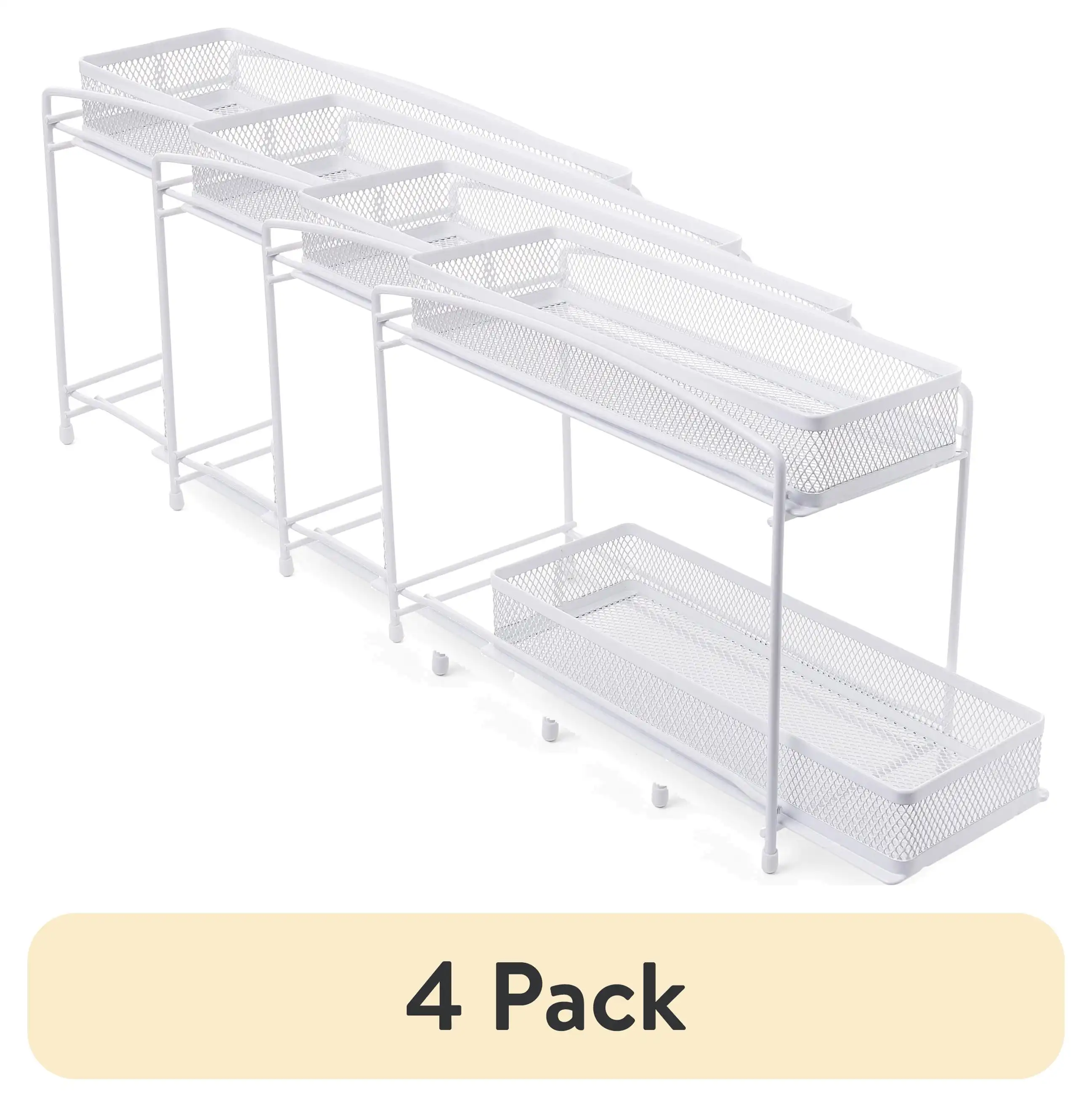 (4 pack)   2-Tier Pull-Out Spice Organizer, White, 4.5" x 11"