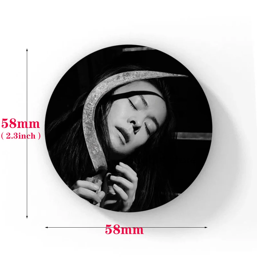 58mm Singer Mitski Enamel Pins Black and White Handmade Brooch Cartoon Cosplay Badge on Backpack Jewelry Accessories Gifts