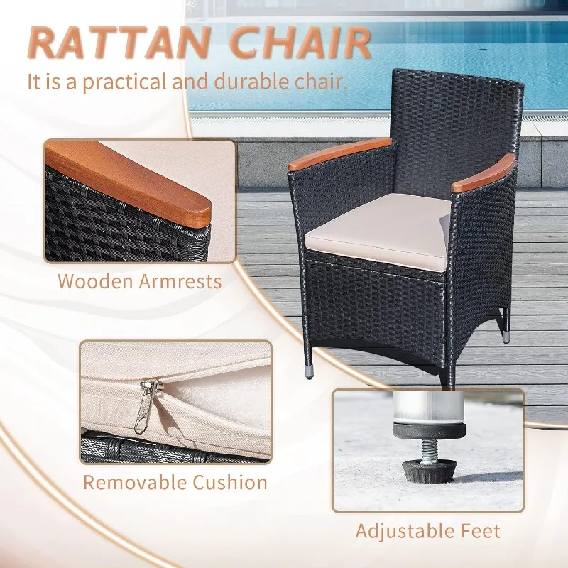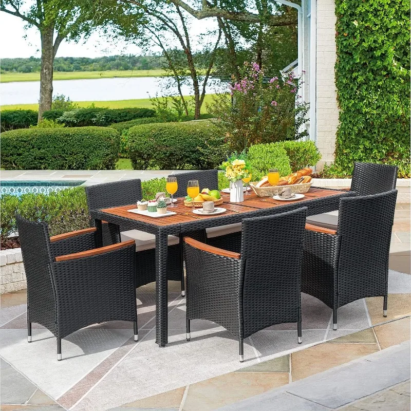 7 PCS Outdoor Patio Dining Set, Outdoor Patio Furniture Set, Rattan Chairs with Large Wood Table for Garden and Yard