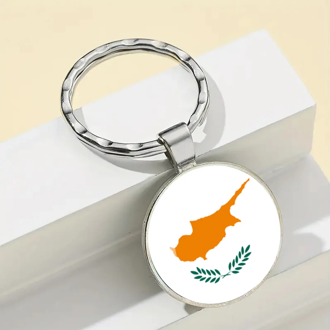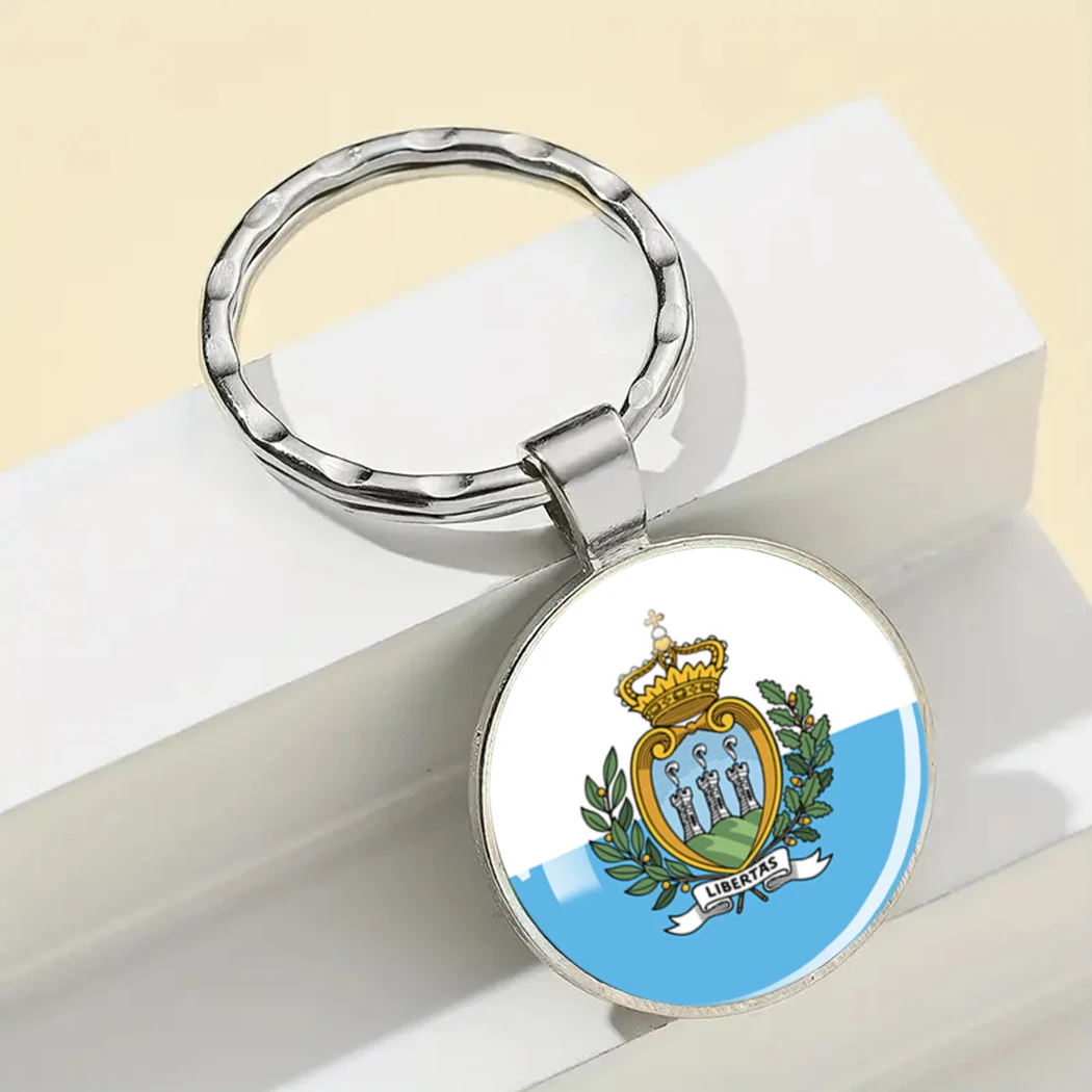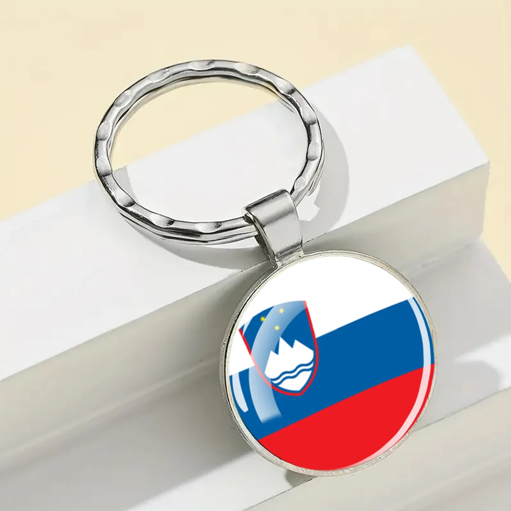 Europe National Flag Keychain Albania Spain Italy France UK Flag Glass Metal Key Chain Bag Pendant Gift for Patriot