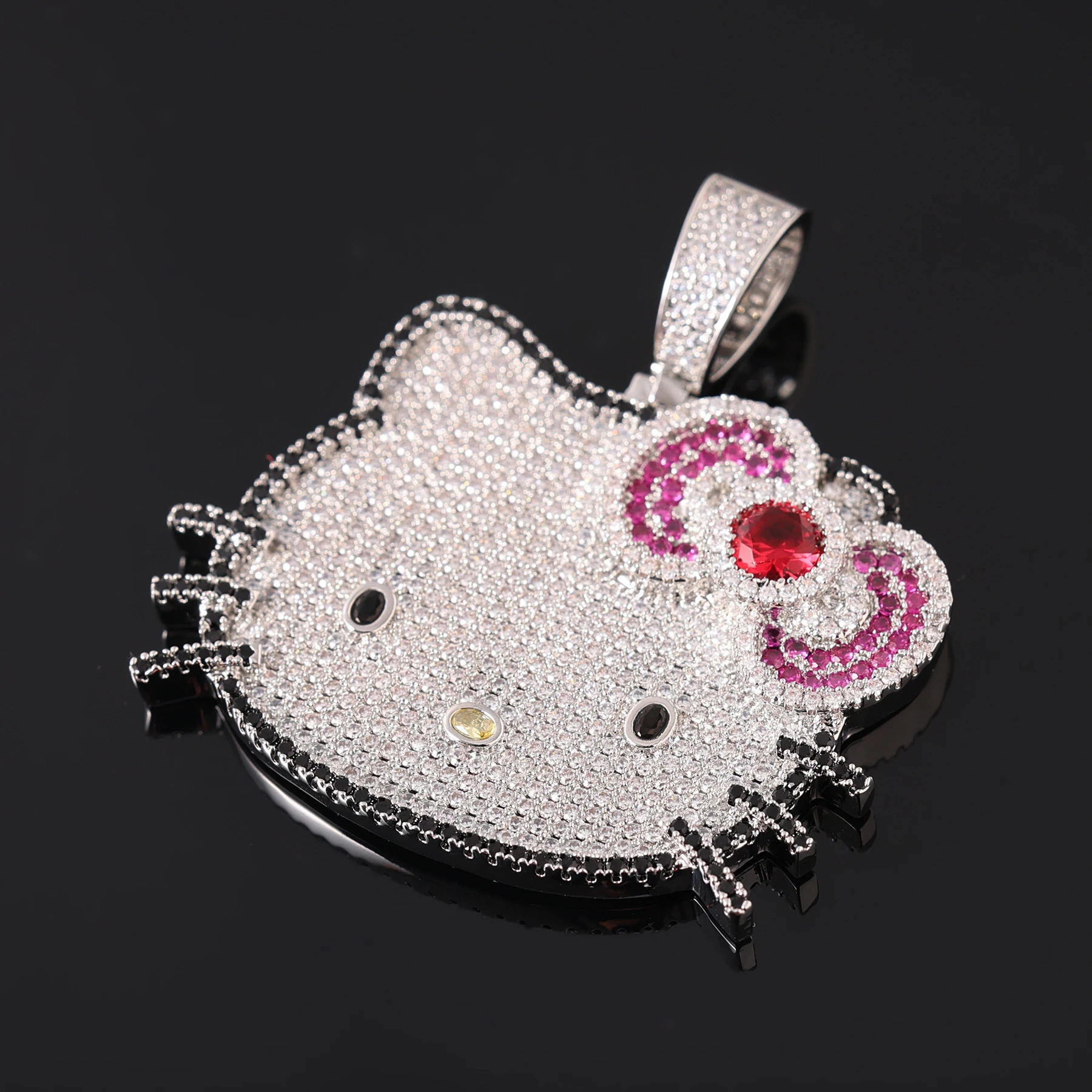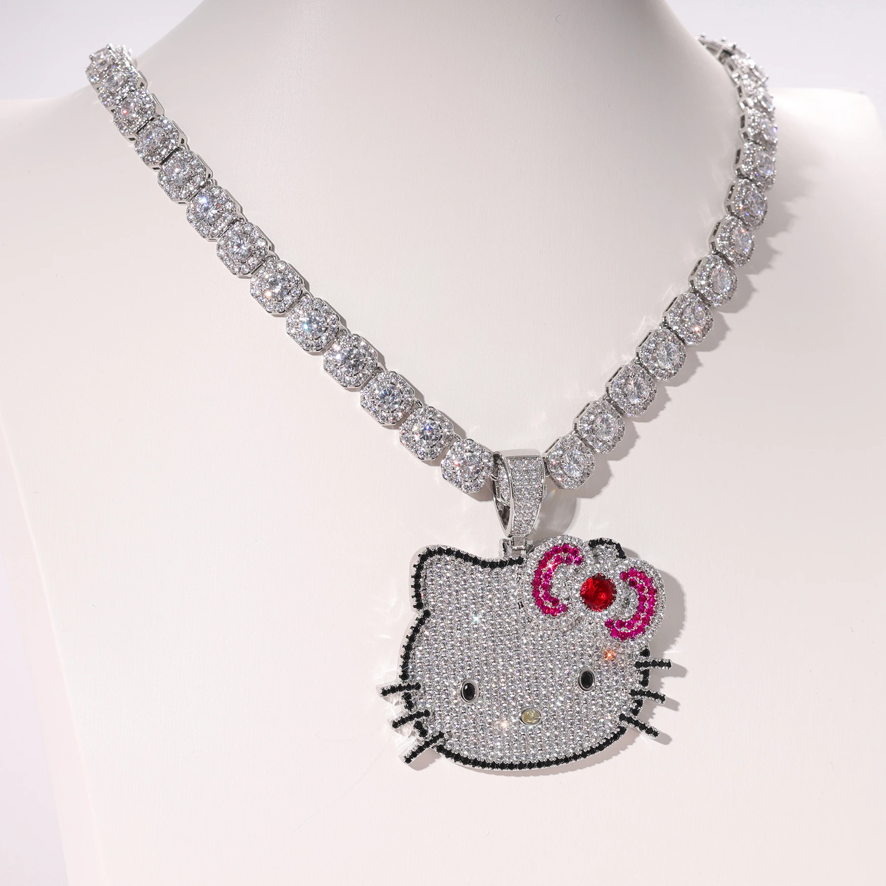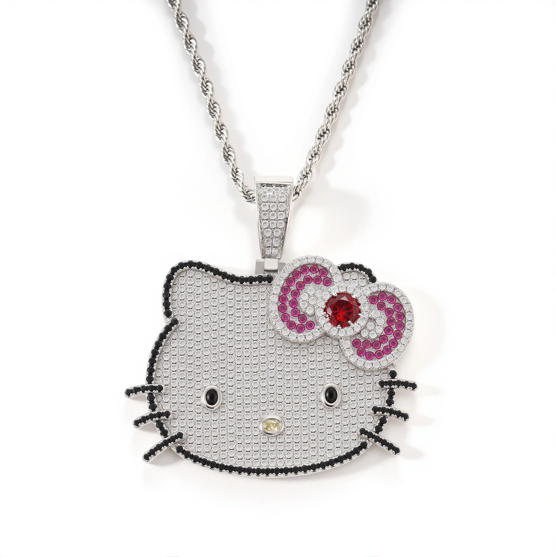 Fashion Women's Cute Hello Kitty Cat Necklace Pendant Iced Out Cartoon Necklaces Gold Plating for Anniversaries