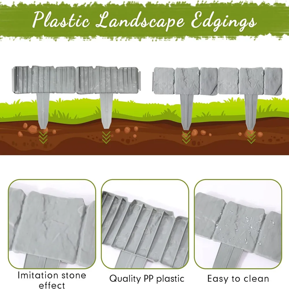 Garden Edging Borders Plastic Landscape Edging Imitation Stone Effect Fence Grey Flower Bed Edging Decorative Lawn Fence Borders for DIY Outdoor Patio Balcony Yard Walkway Landscaping