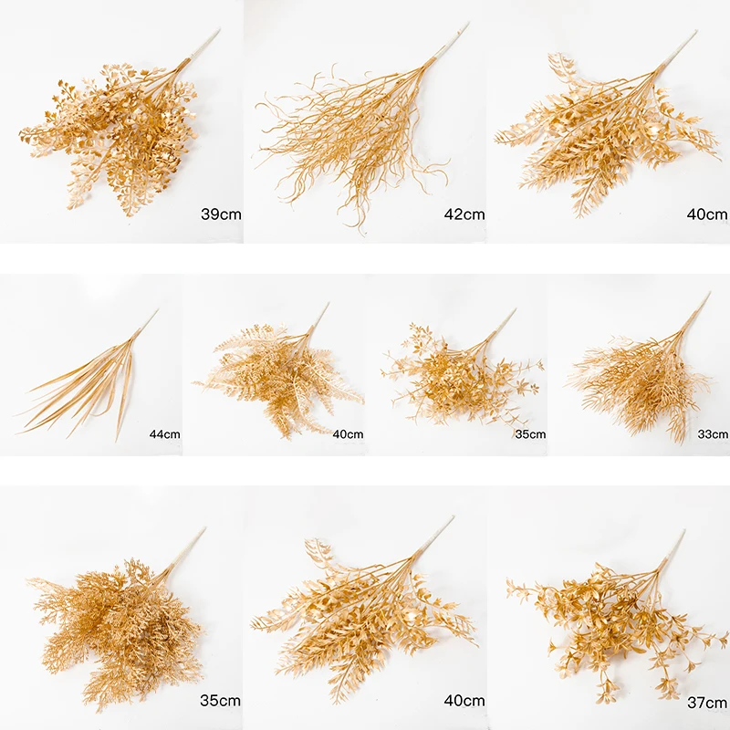 Gold Plastic Artificial Plants Balcony Bonsai DIY Flower Arrangement Eucalyptus Leaves  Autumn Home Party Christmas Decorations