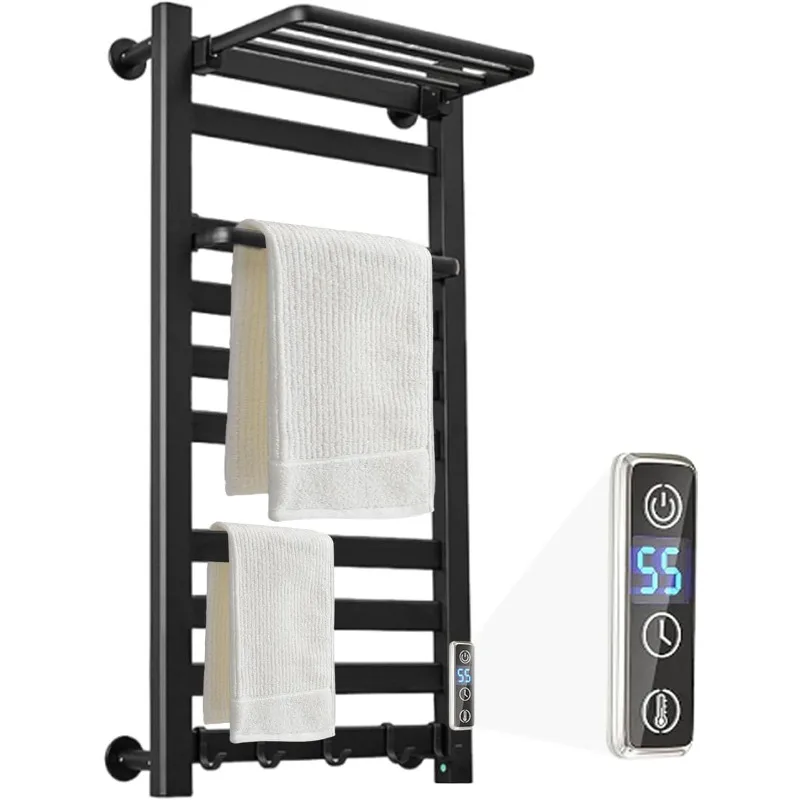 Heated Towel Rack Wall Mounted with Shelf for Bathroom Towel Warmer Racks with Timer & Temperature Multi-Level Adjustments with 10 Bars for Bathroom Shower Hot Tub(Black)