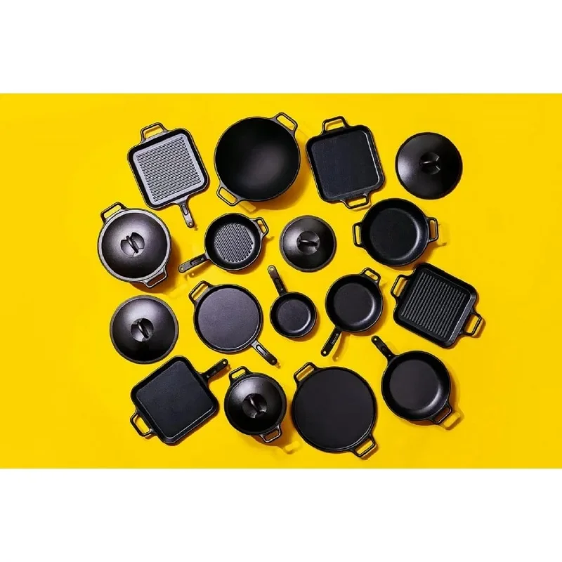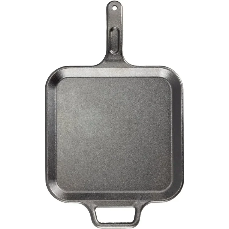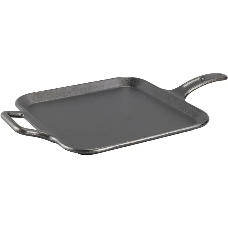 12 INCH CAST IRON SQUARE GRIDDLE: Seasoned and ready to use, this generously-sized griddle features helpful, modern handles and low sidewalls for maximum versatility.