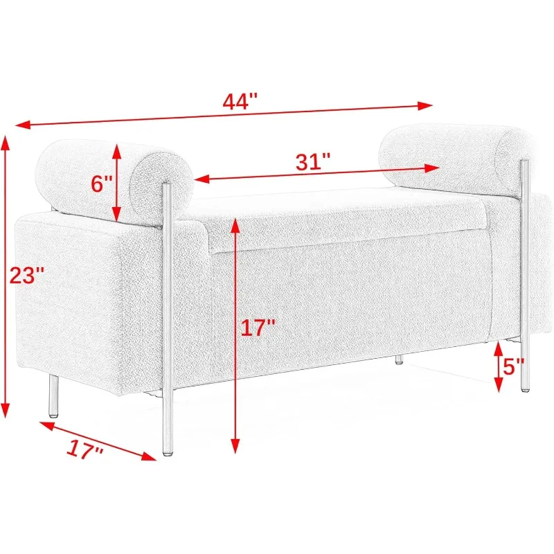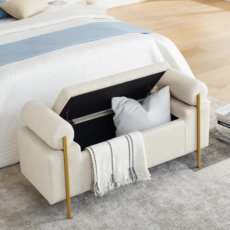 [Sturdy & Durable Structure] Structured with solid wood and manufactured with,this end of bed storage bench for bedroom has golden metal leg supporting. Exquisitely crafted,this bed bench can bear up to 250 LBS weight limit max.