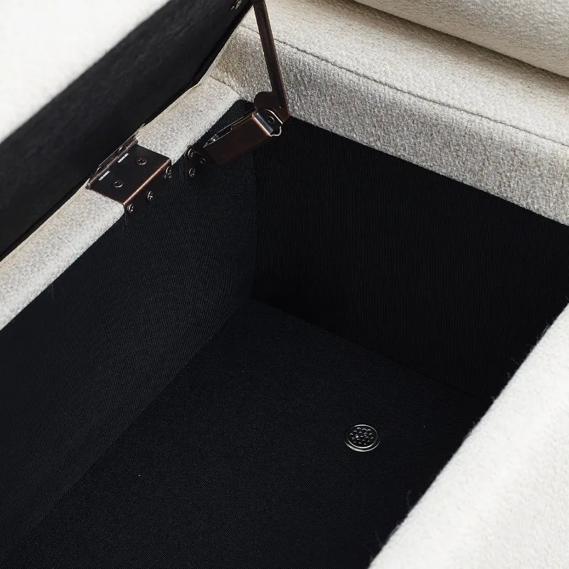 [Armed Storage Bench with Wide Applications] Our linen upholstered beige bedroom storage bench for foot of bed is uniquely designed with 2 cylider pillow arms,which provide great ergonomic support. It also work great as foyer entryway bench at door. And you can also use it as a foot rest stool in living room. And of course,it is also a very decorative and functional window bench with seating and storage.