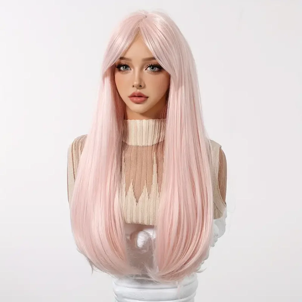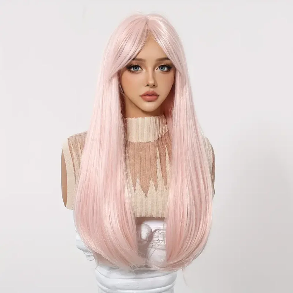 Feature 13: Light Pink Long Straight Synthetic Wigs