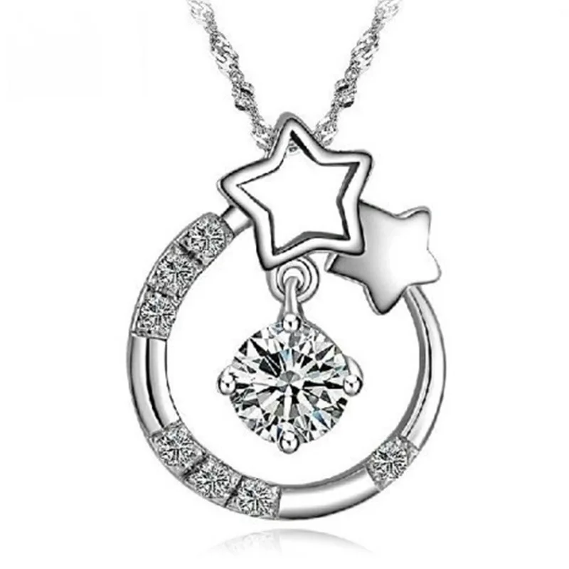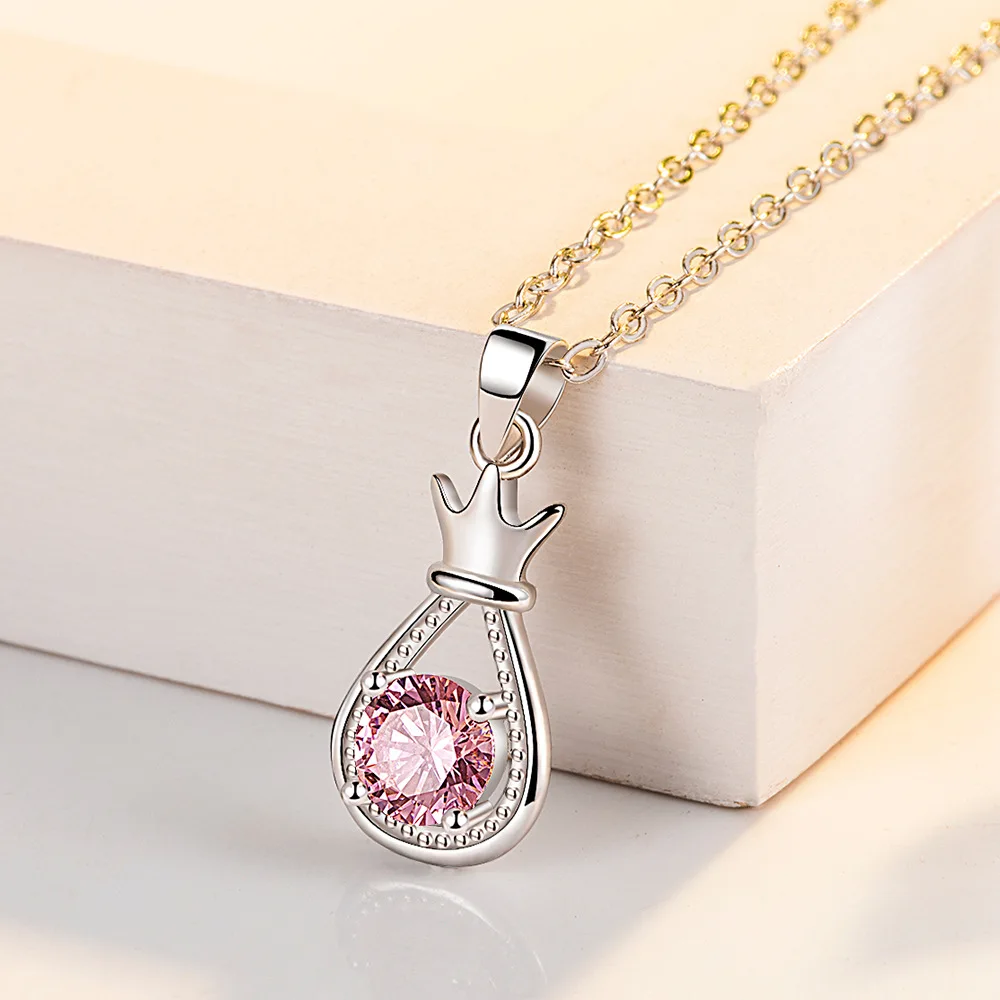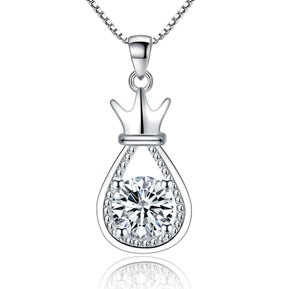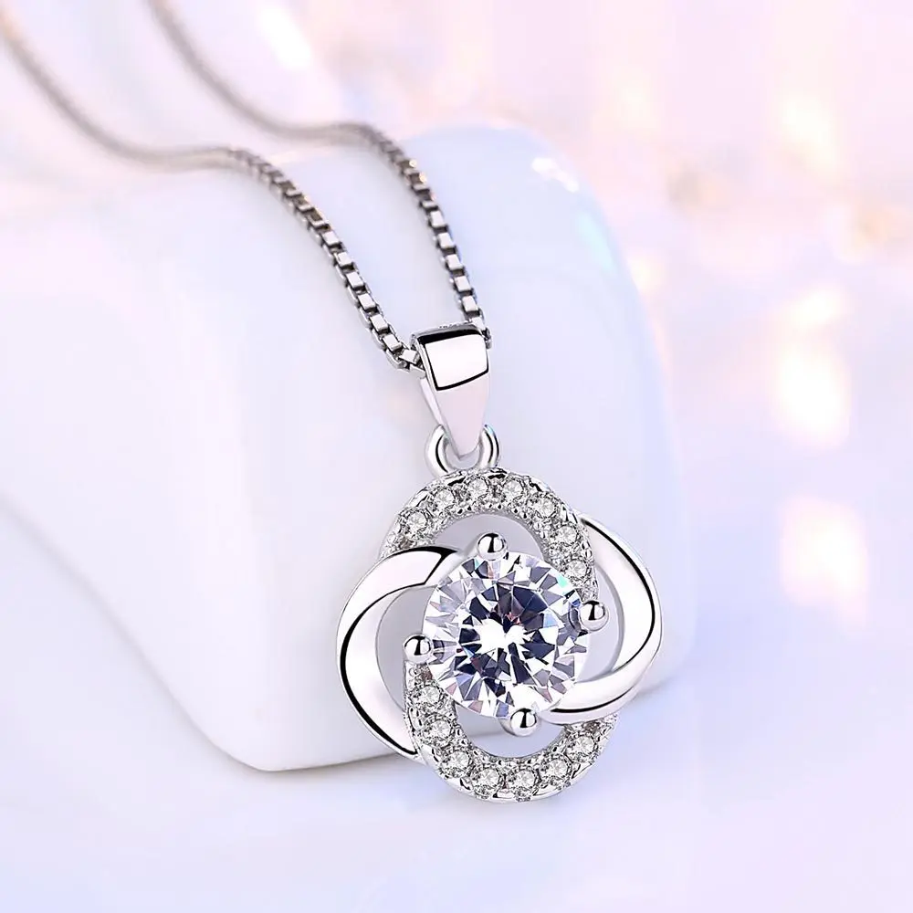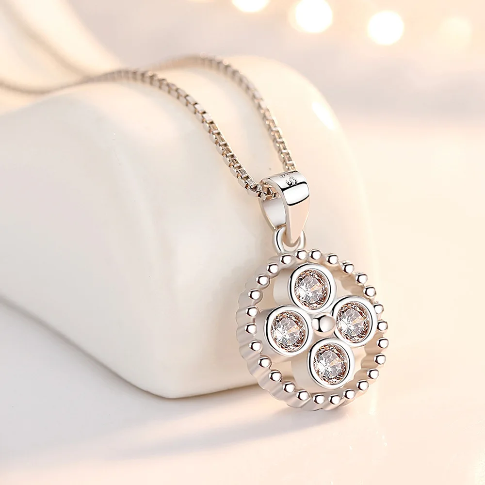 New 925 Sterling Silver Necklace For Women Round Pendent Sparkling Pave CZ Necklace Fashion Anniversary Birthday Jewelry Gifts