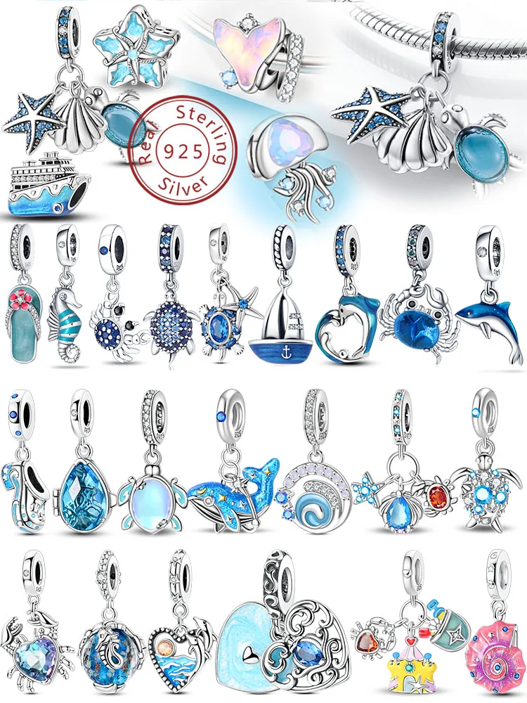 Ocean Trendy 925 Silver Dolphin Crab Boat Beach Charms Beads Fit 3mm Original Bracelets DIY Thoughtful Fine Jewelry Making Gifts