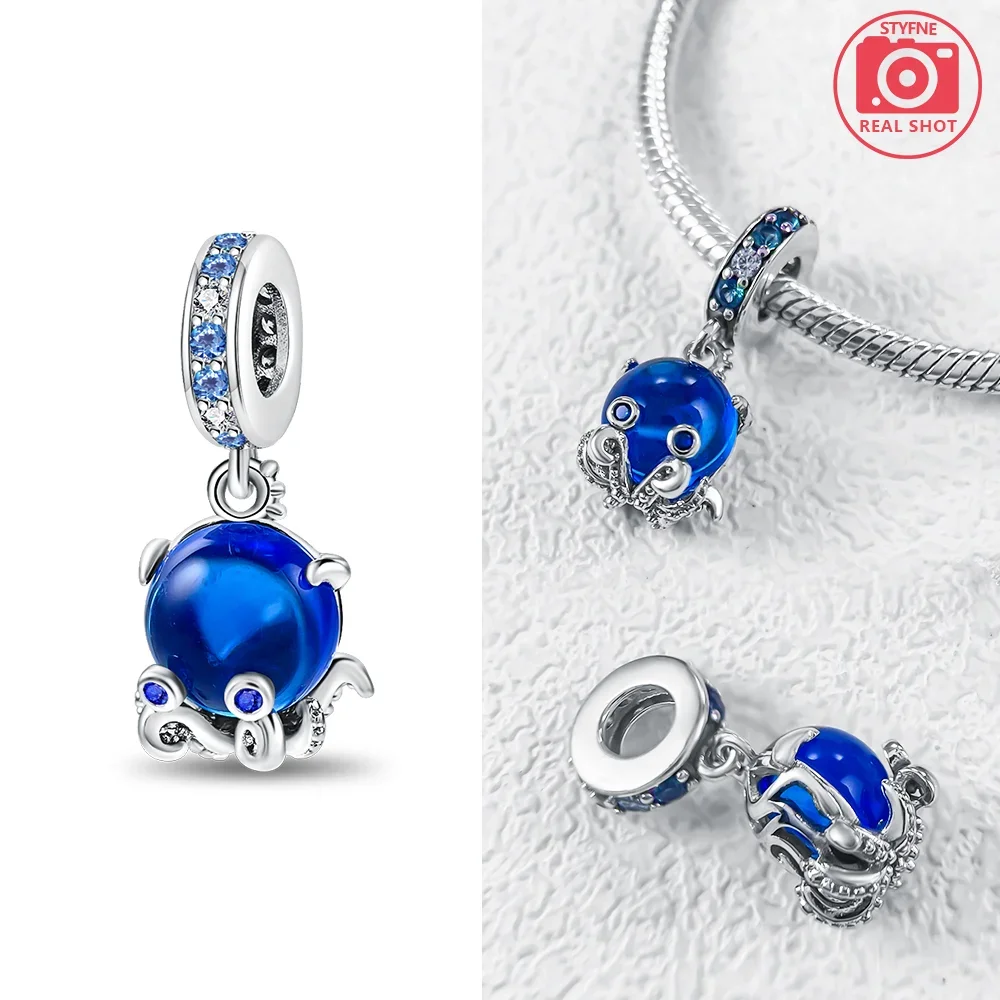Original Treasure Box Marine Octopus Crab Pirate Charms 925 Silver Beads Fit Bracelet Women Accessories Jewelry Diy Gift Party