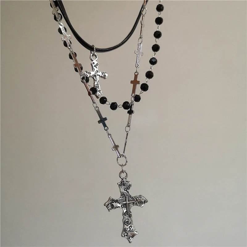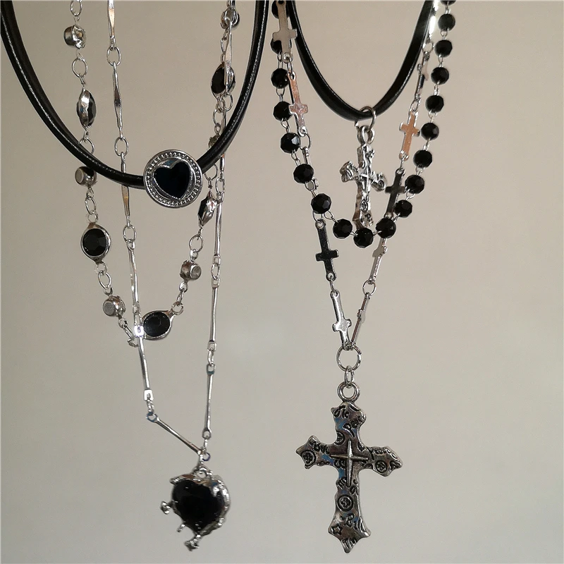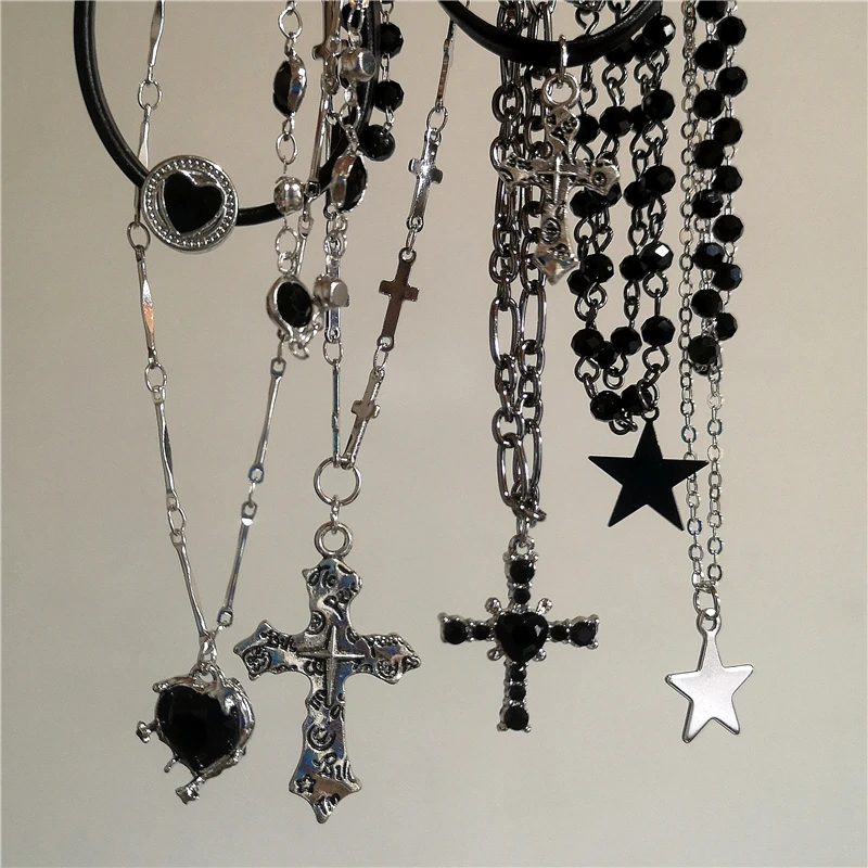 Personalized Punk Star Heart Cross Chain Double Layer Necklace For Men Women Y2K Fashion Trend Rock Party Grunge EMO Accessories