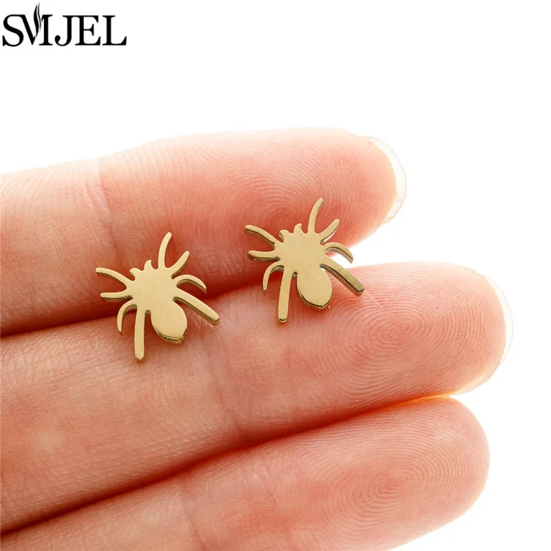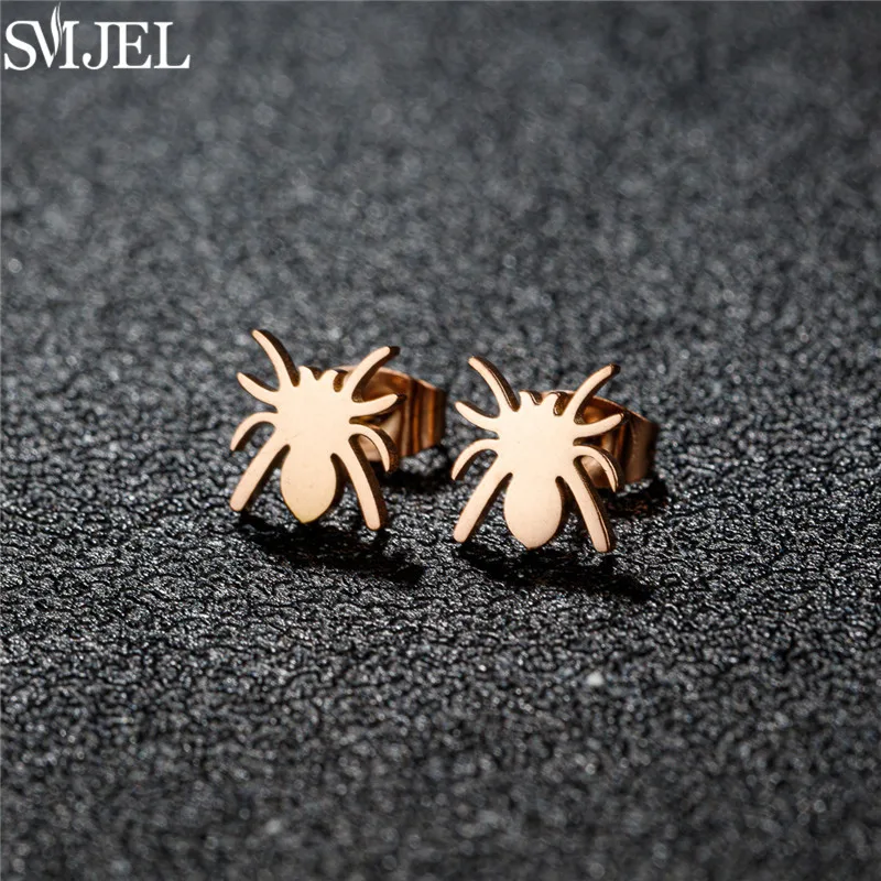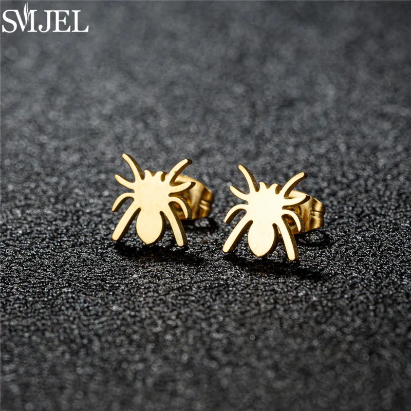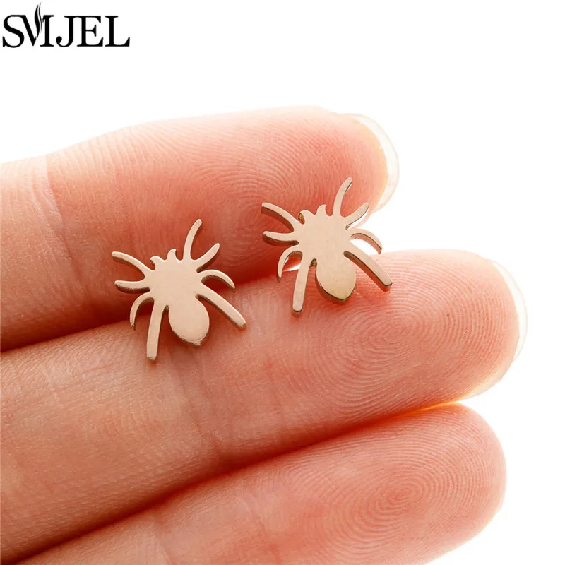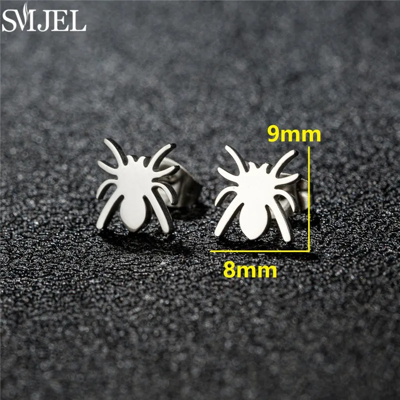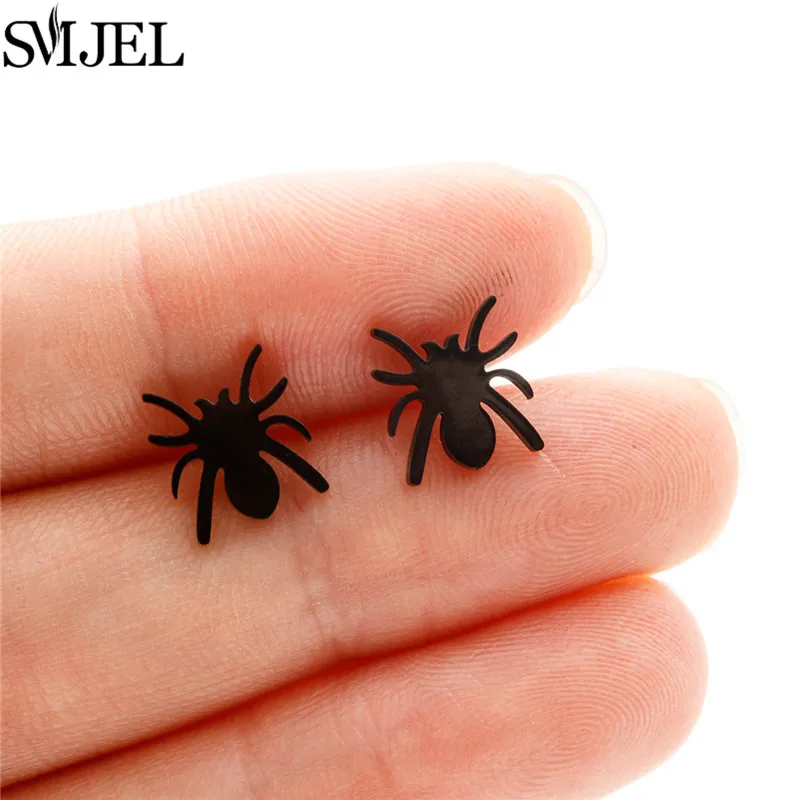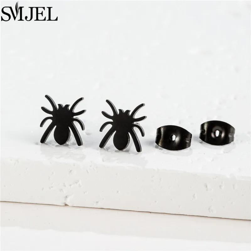 Punk Black Spider Stainless Steel Stud Earrings for Women Men Personality Spider Web Earings Halloween Piercing Jewelry 2024