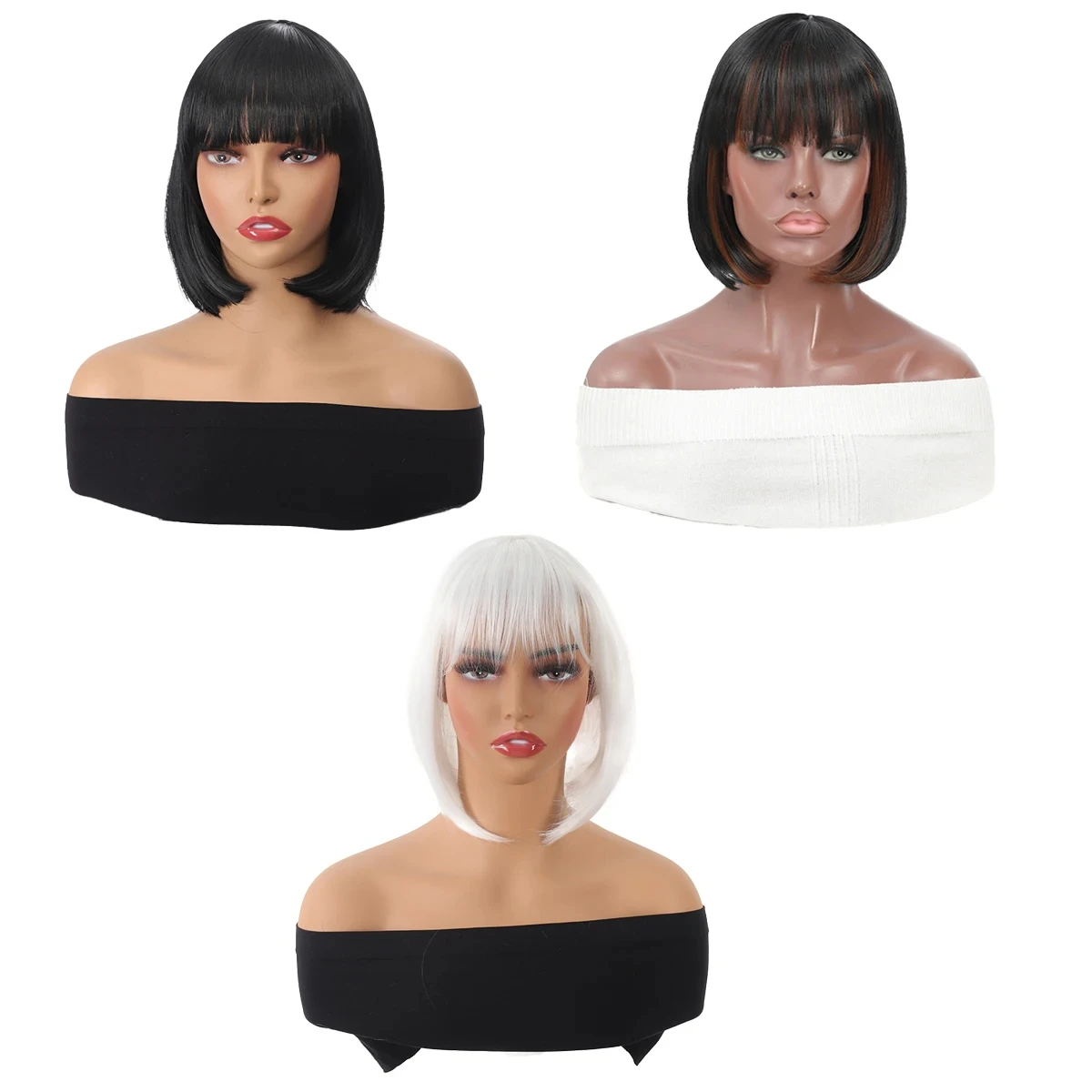 Synthetic Natural Black Short Bob Hair Wigs for Women With Bangs  Straight Cosplay Halloween Party Wig For Girls Daily Hair Wigs