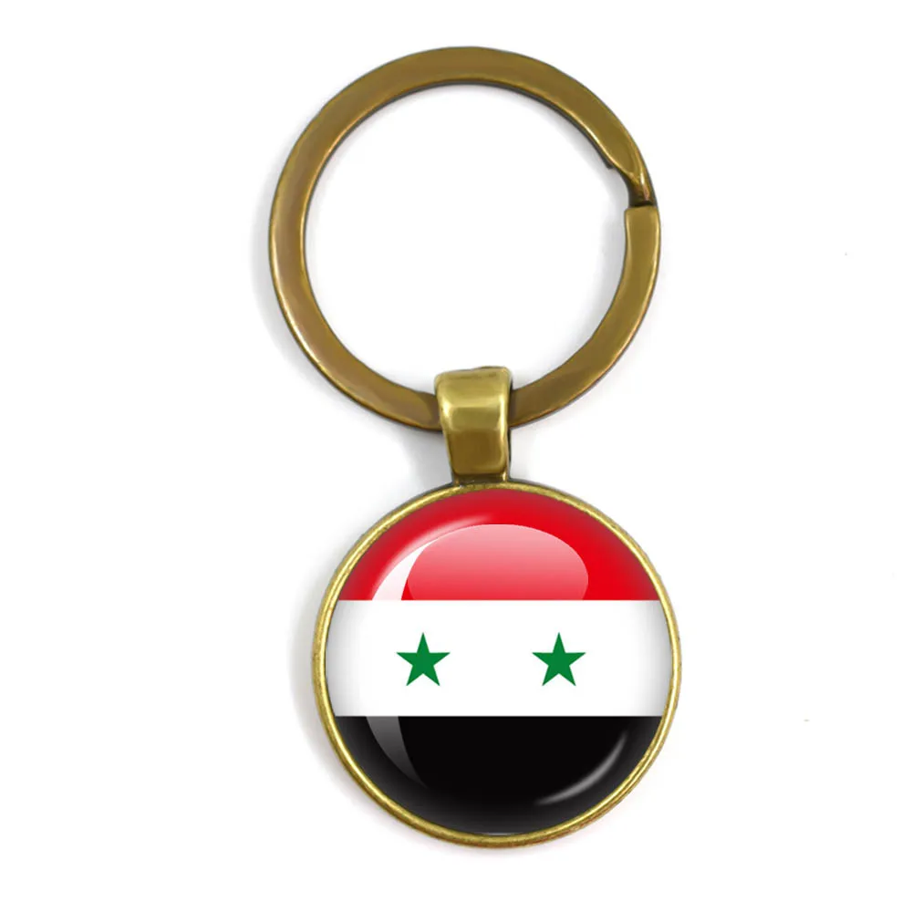 Syria Flag National keychain Glass Cabochon Pendant Keychain For Women Men Charm Car Keyring Creative Fashion Jewelry Gift